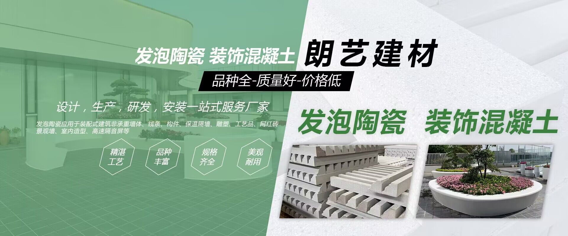 裝飾混凝土、發(fā)泡陶瓷實力廠家 成立于2006年,專業(yè)從事EPS、GRC、GRG、發(fā)泡陶瓷、裝飾混凝土等新型裝飾造型材料的設計、研發(fā)、生產和服務的綜合性企業(yè)